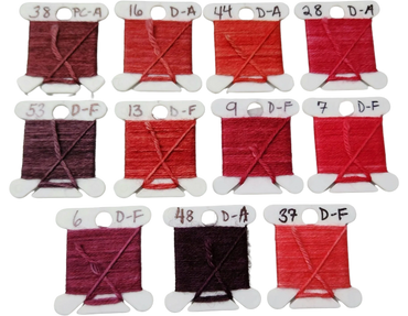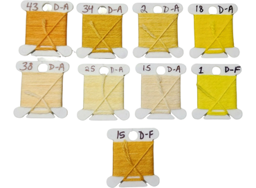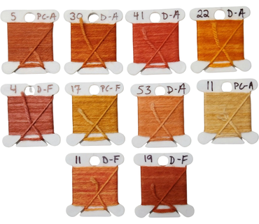 Here are my available dye colors! Some are acid dyes, and some are fiber reactive dyes. Both can be used on protein fiber yarns (wool, silk, alpaca, nylon, etc.), but if you are ordering any plant fiber yarns (cotton, linen, tencel, bamboo, and so on), then only the fiber reactive dyes will work. Acid dyes will barely stain a plant fiber yarn. Colors ending in an A are acid dyes, and colors ending in an F are fiber reactive dyes.